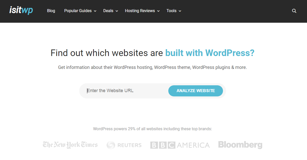 The easiest way is to use the ready online service “Isitwp“, which can automatically determine which WordPress theme is used on the web site. In addition, this service will help determine if WordPress is used at all on the analyzed site. It is enough just to copy and paste the URL of the site you are interested in, into the appropriate line.
